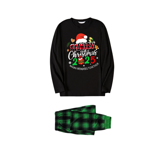 "Making Memories Together Christmas 2025" Print Black and Green Plaid Pants Family Matching Pajamas