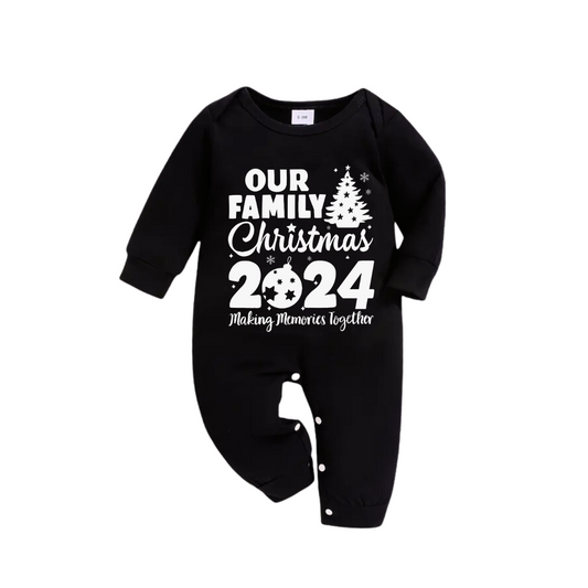 Christmas Tree & "Making Memories Together" 2024 Patterned Black Long Sleeve Top with Green and Black Plaid Family Matching Pajamas