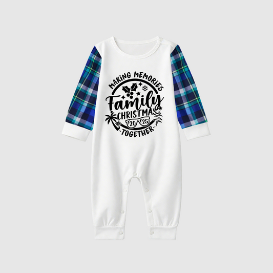 Family Christmas 2025 Making Memories Together Text Print Blue Long Sleeve Top With Blue Plaid Family Matching Pajamas