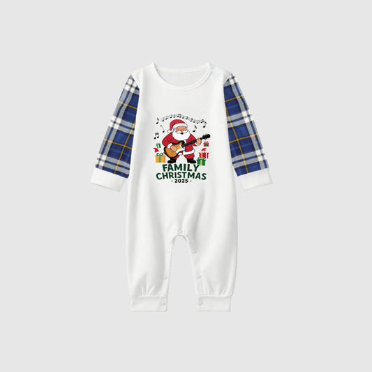 Christmas Family Matching Pajamas-Blue Raglan Top Blue Plaid Pants Pjs Set with Santa and "Merry Christmas" Print