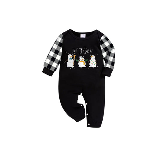 Black and White Plaid Short Sleeve Christmas Pajamas Set with Snowman and Slogan Designs