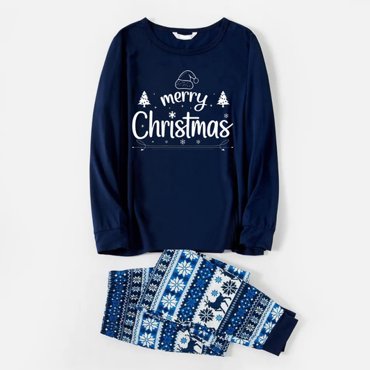 Merry Christmas Print Blue Family Christmas Matching Pajamas