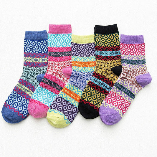 5Pairs/lot New Witner Thick Warm Wool Women Vintage Christmas Socks