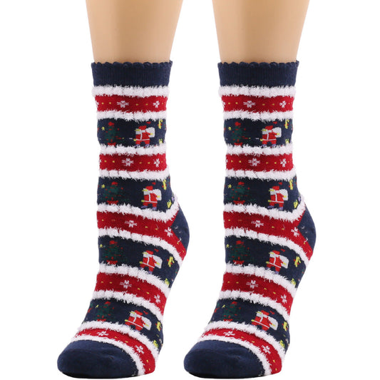 Christmas Women's Socks Coral Fleece Floor Cute Socks 6 pcs