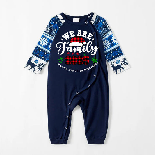 Christmas "We are Family" Text Print Blue Long Sleeve Top with Red & Blue Plaid Family Matching Pajamas