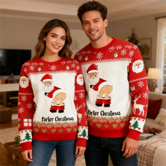 Goofy Santa Pattern Print Sweater - Ugly & Cozy Unisex Pullover