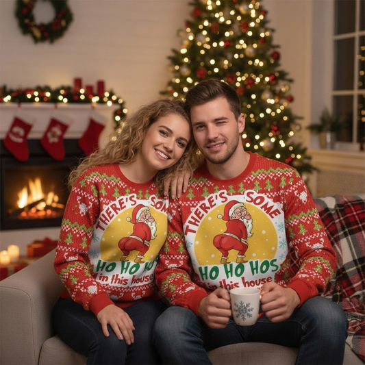 Funny Ugly Christmas Sweater for Men & Women - Playful Santa Claus Print