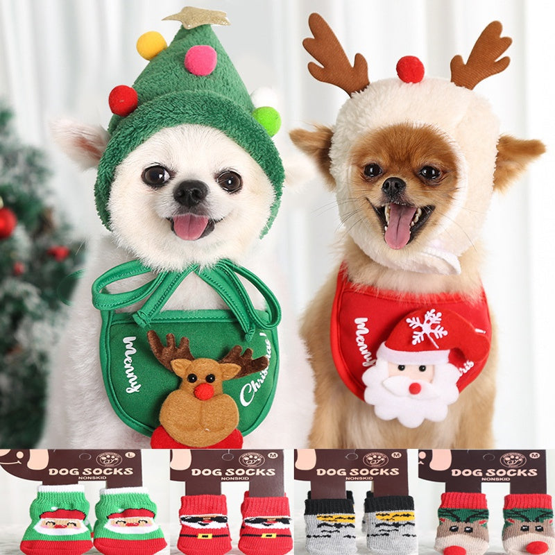 Festival Pet Super Cute Hat Costume Dogs Scarf Saliva Towel for Christmas Dress Set