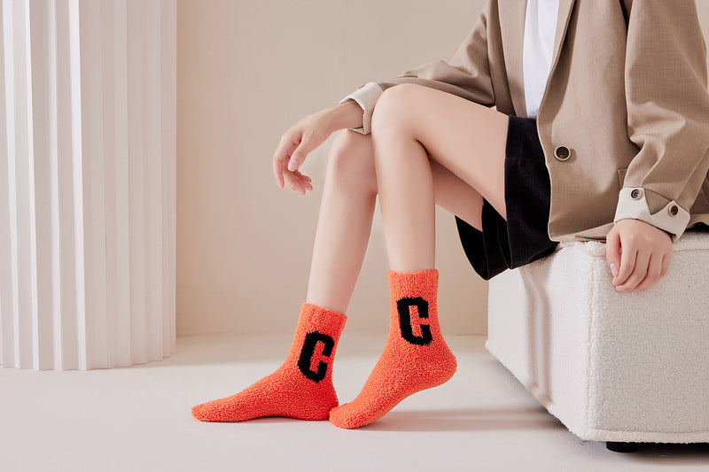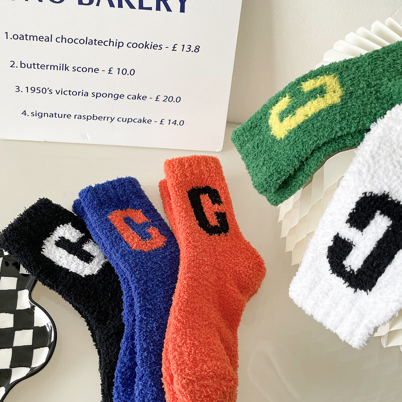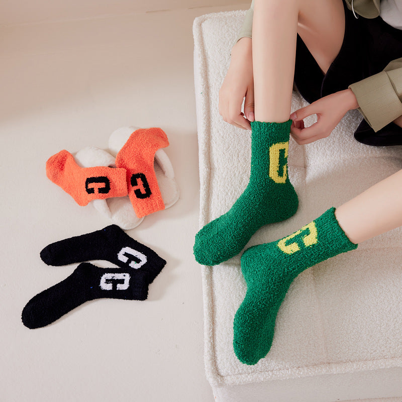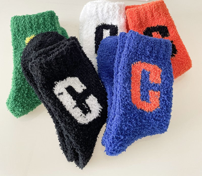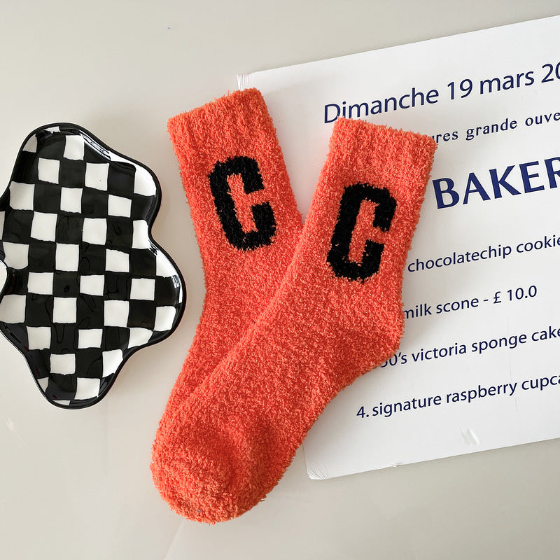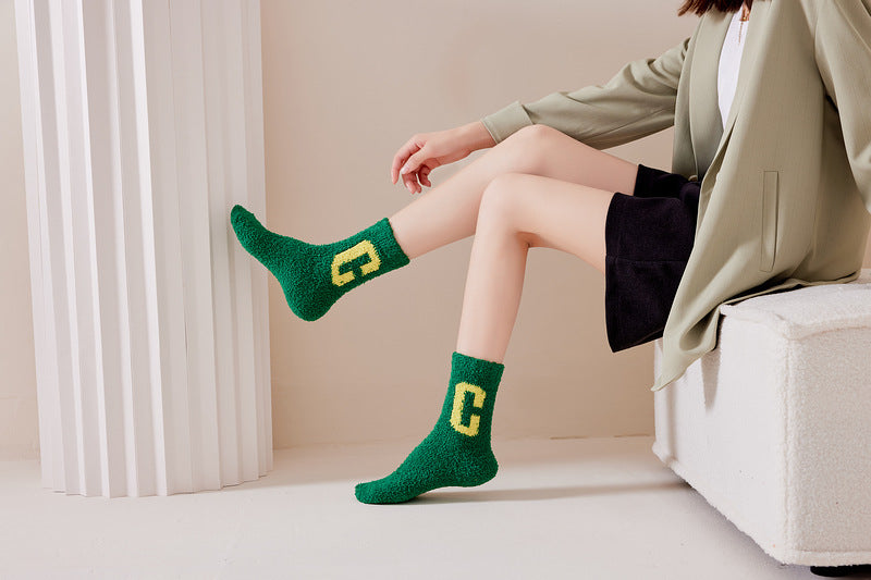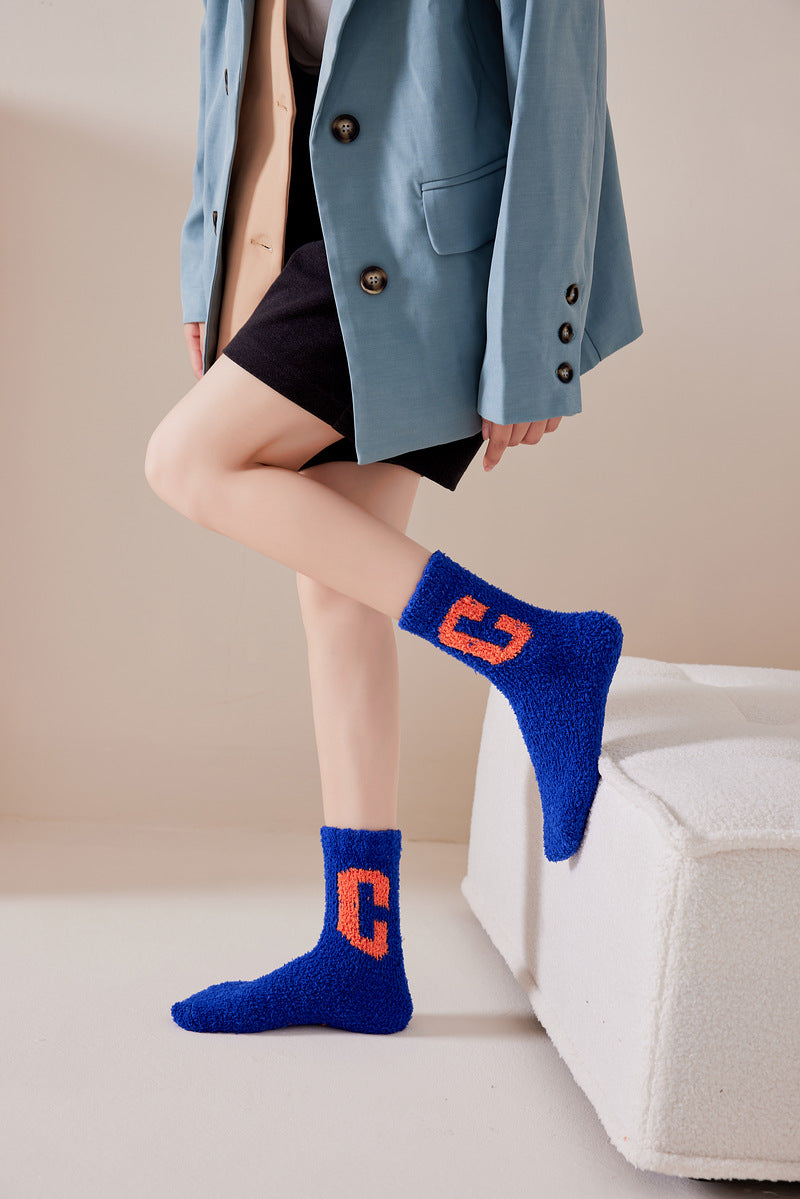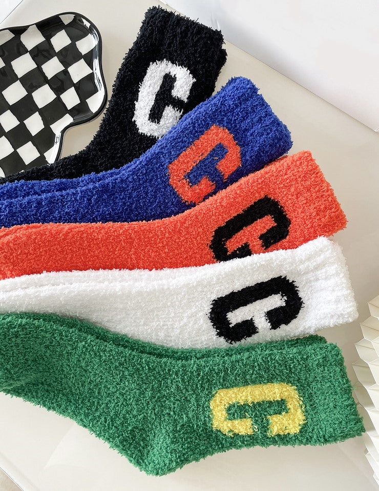 Super Cozy Women's Coral Fleece Socks With Sherpa Lining And Letter Embroidery Holiday Socks