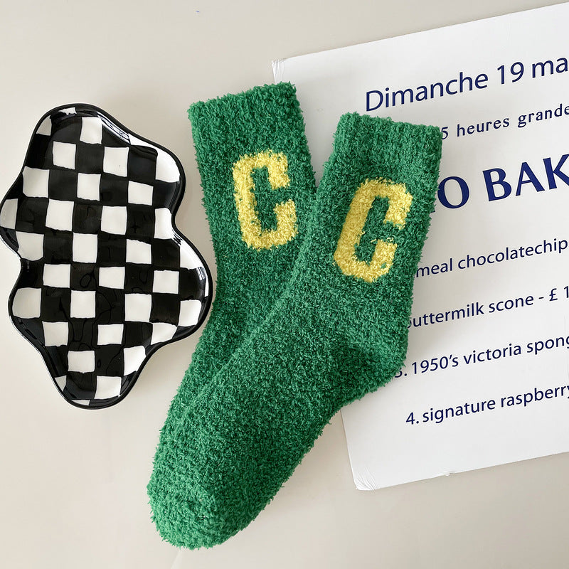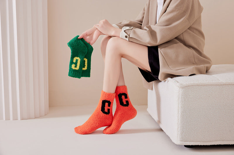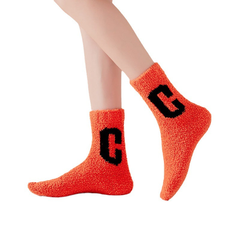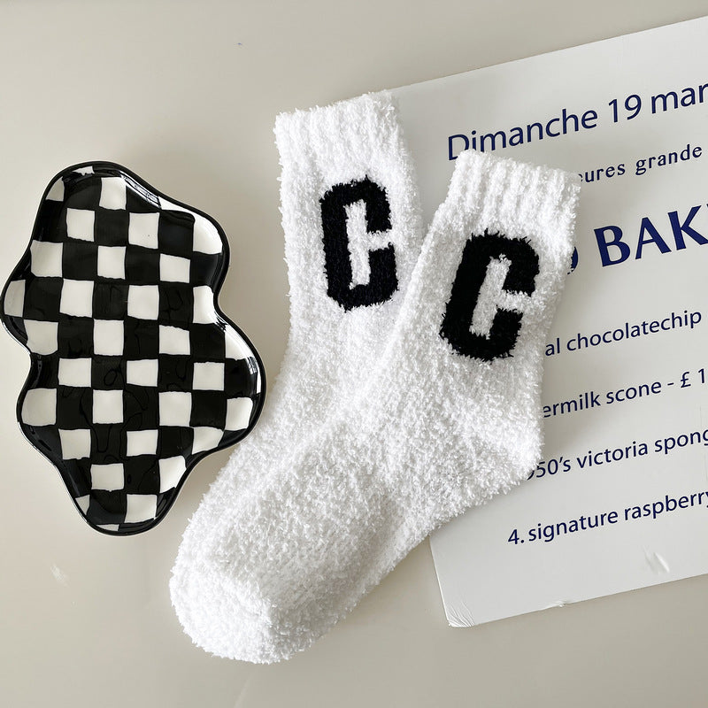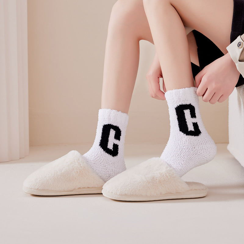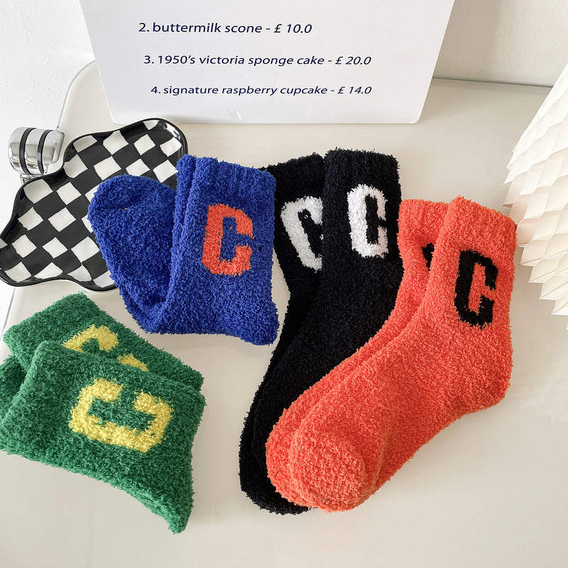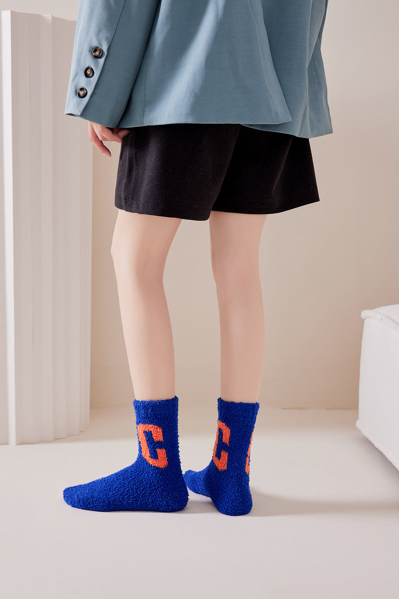 Super Cozy Women's Coral Fleece Socks With Sherpa Lining And Letter Embroidery Holiday Socks