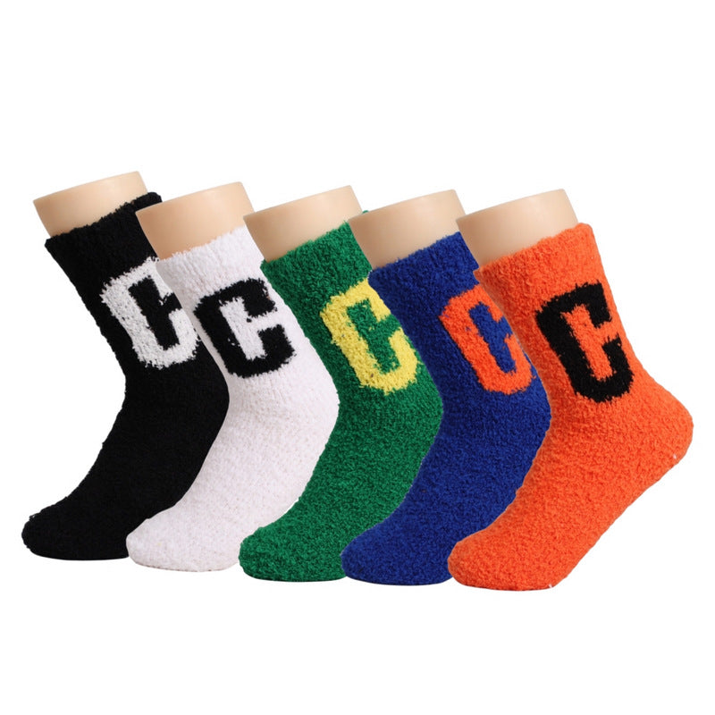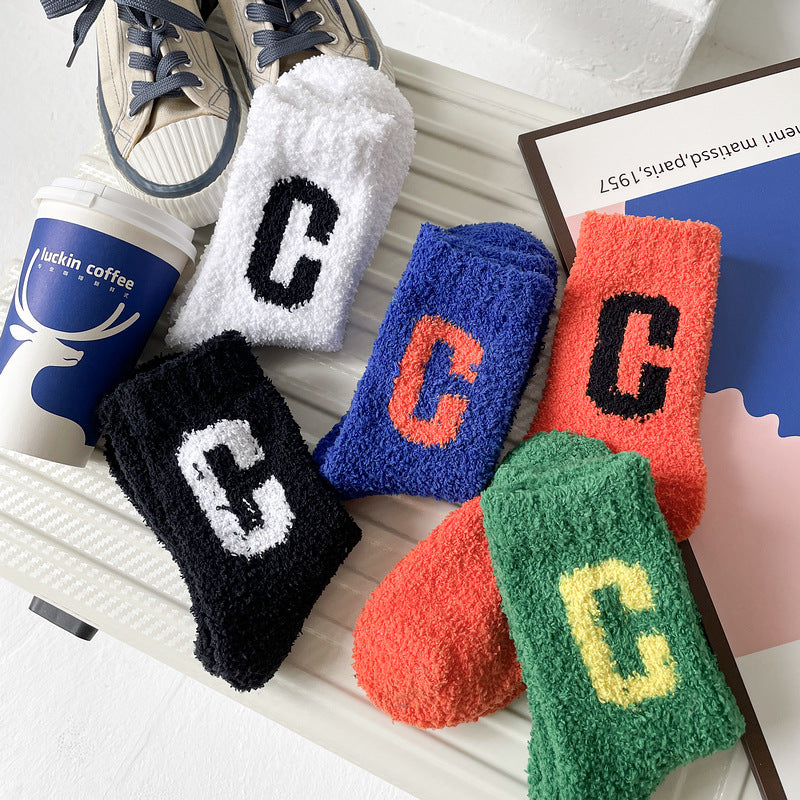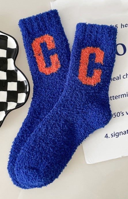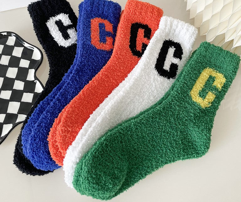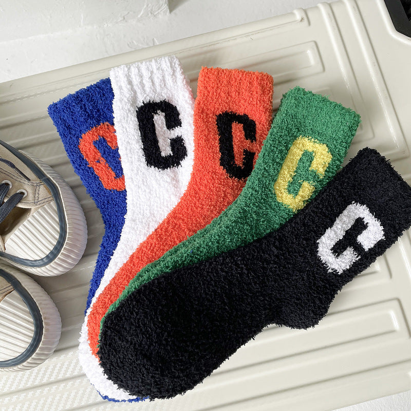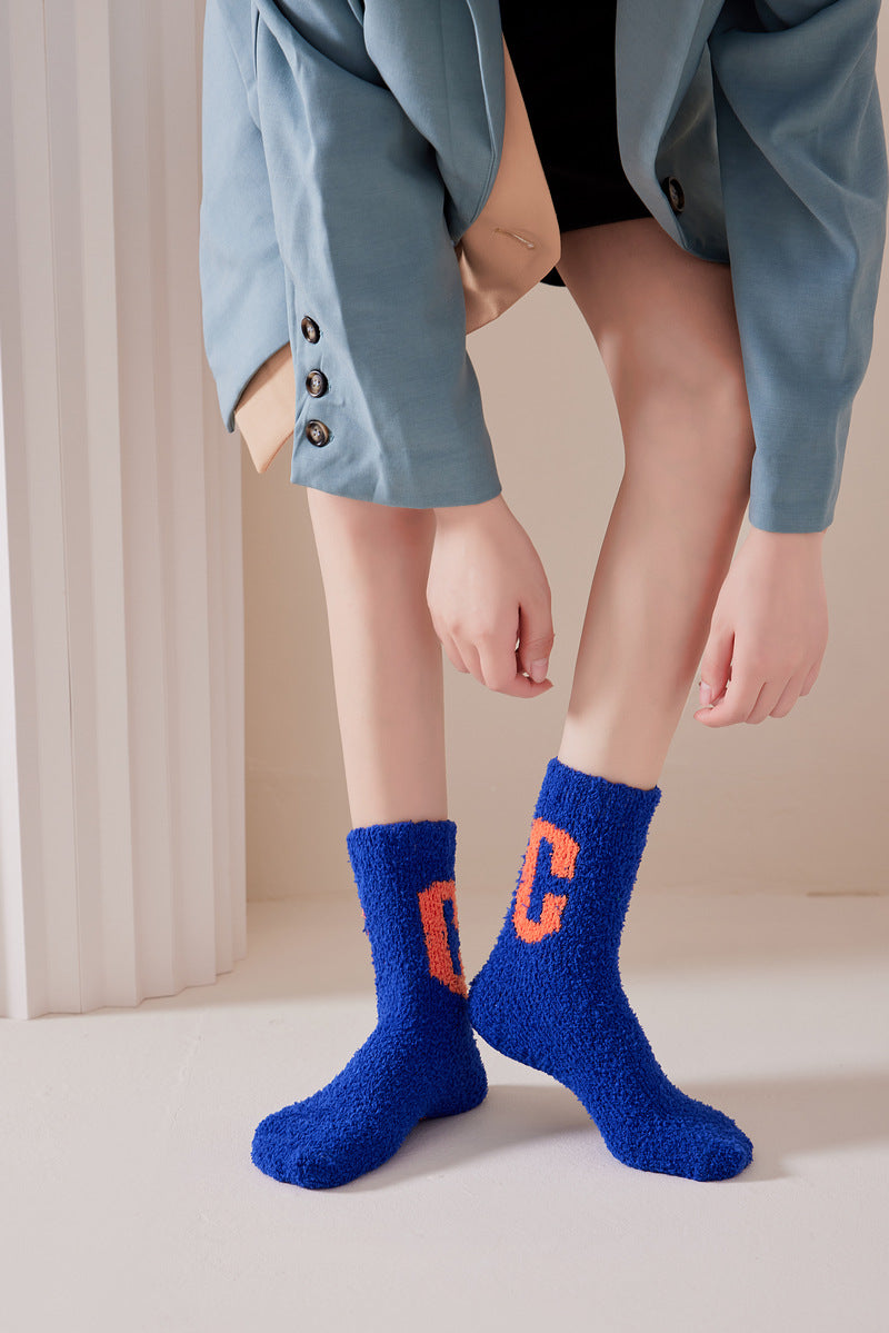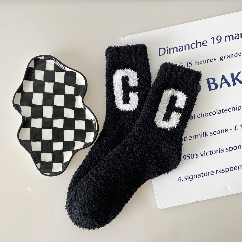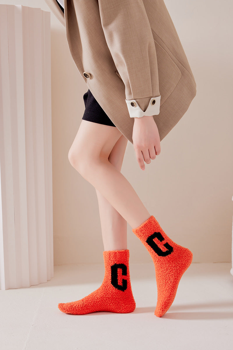 Super Cozy Women's Coral Fleece Socks With Sherpa Lining And Letter Embroidery Holiday Socks