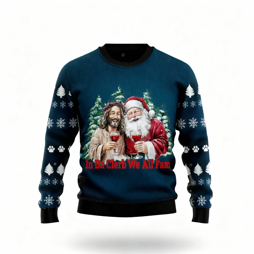 Jesus & Santa Claus Print - Vintage Christmas Icon Ugly Sweater