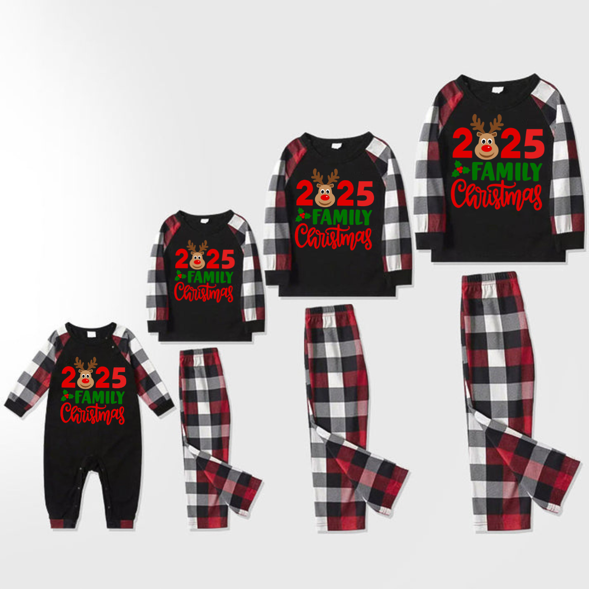 "2025 Family Christmas" Moose Letter Prints Red & Black & Grey & White Plaid Family Matching Pajamas