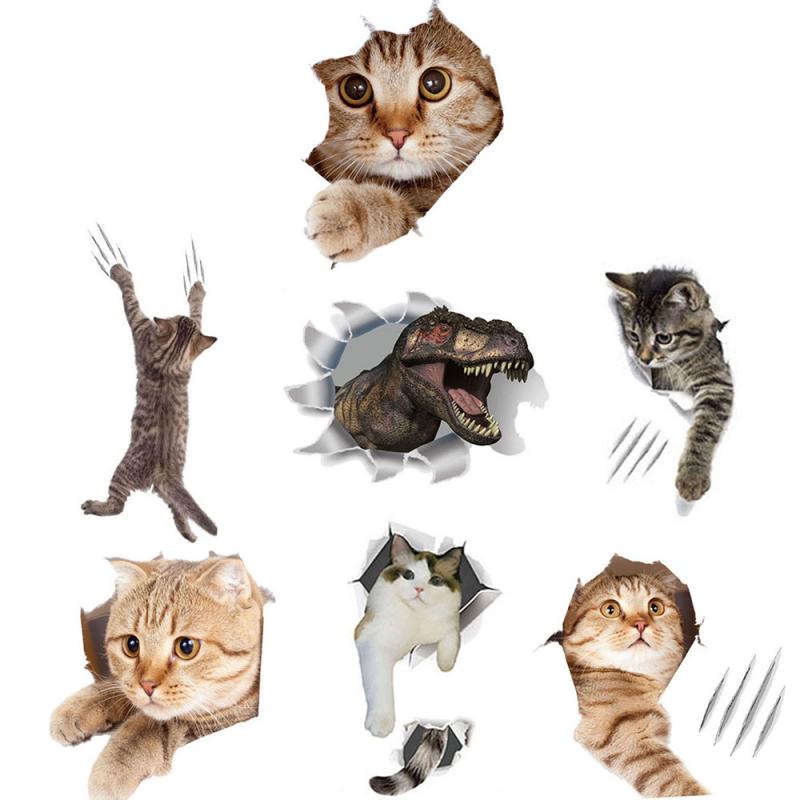 Cat Vivid 3D Smashed Switch Wall Sticker Bathroom Toilet Kicthen Decorative