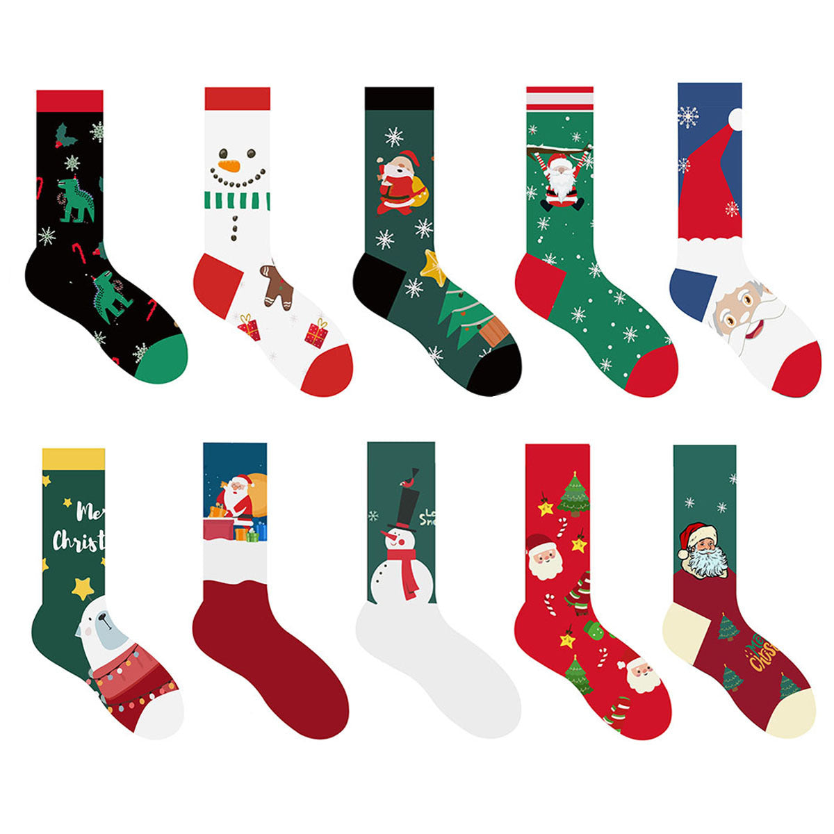 Christmas Stocking Santa Claus Snowman Dinosaur Polar Bear Sock 2 Pairs