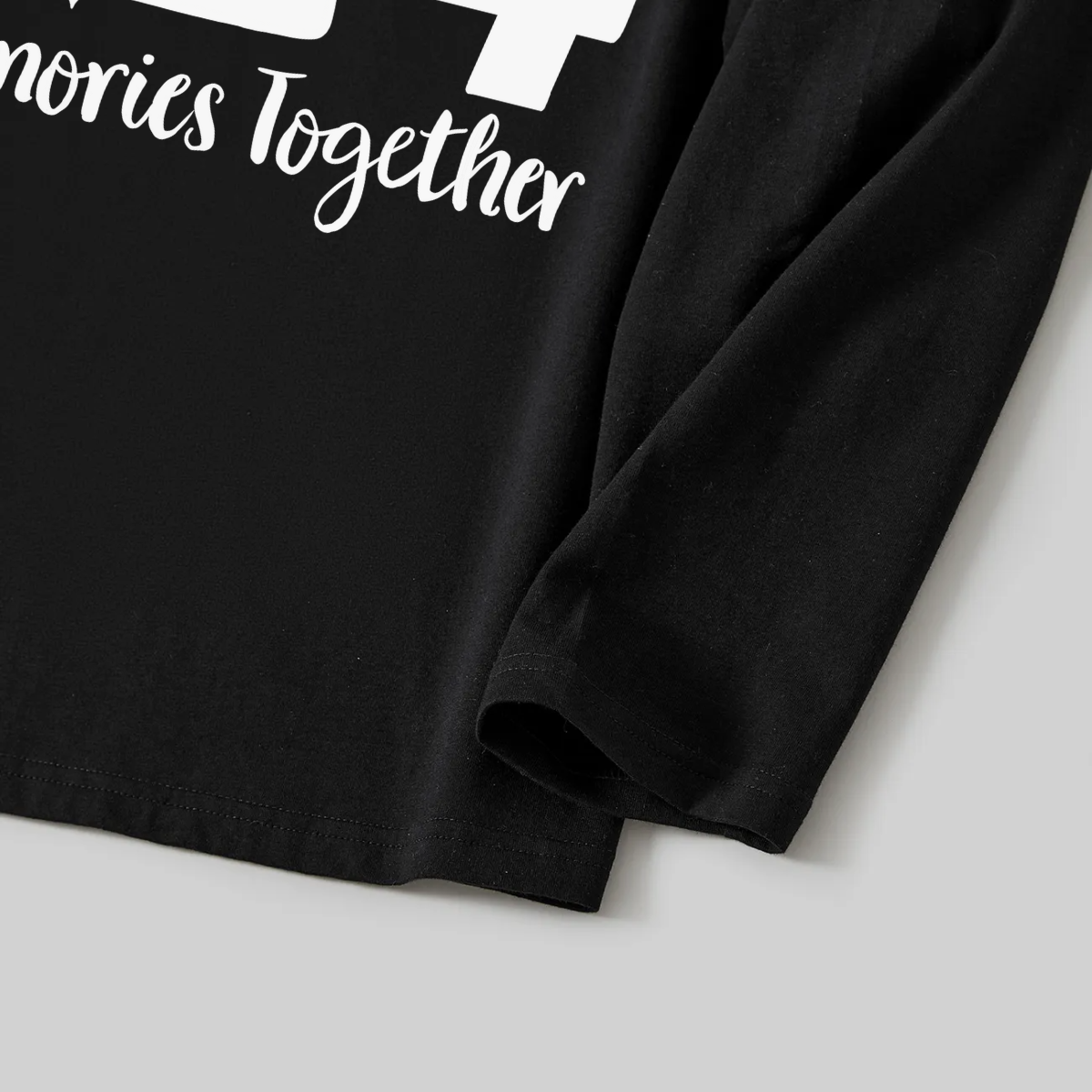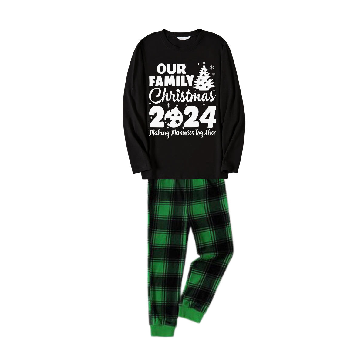 Christmas Tree & "Making Memories Together" 2024 Patterned Black Long Sleeve Top with Green and Black Plaid Family Matching Pajamas