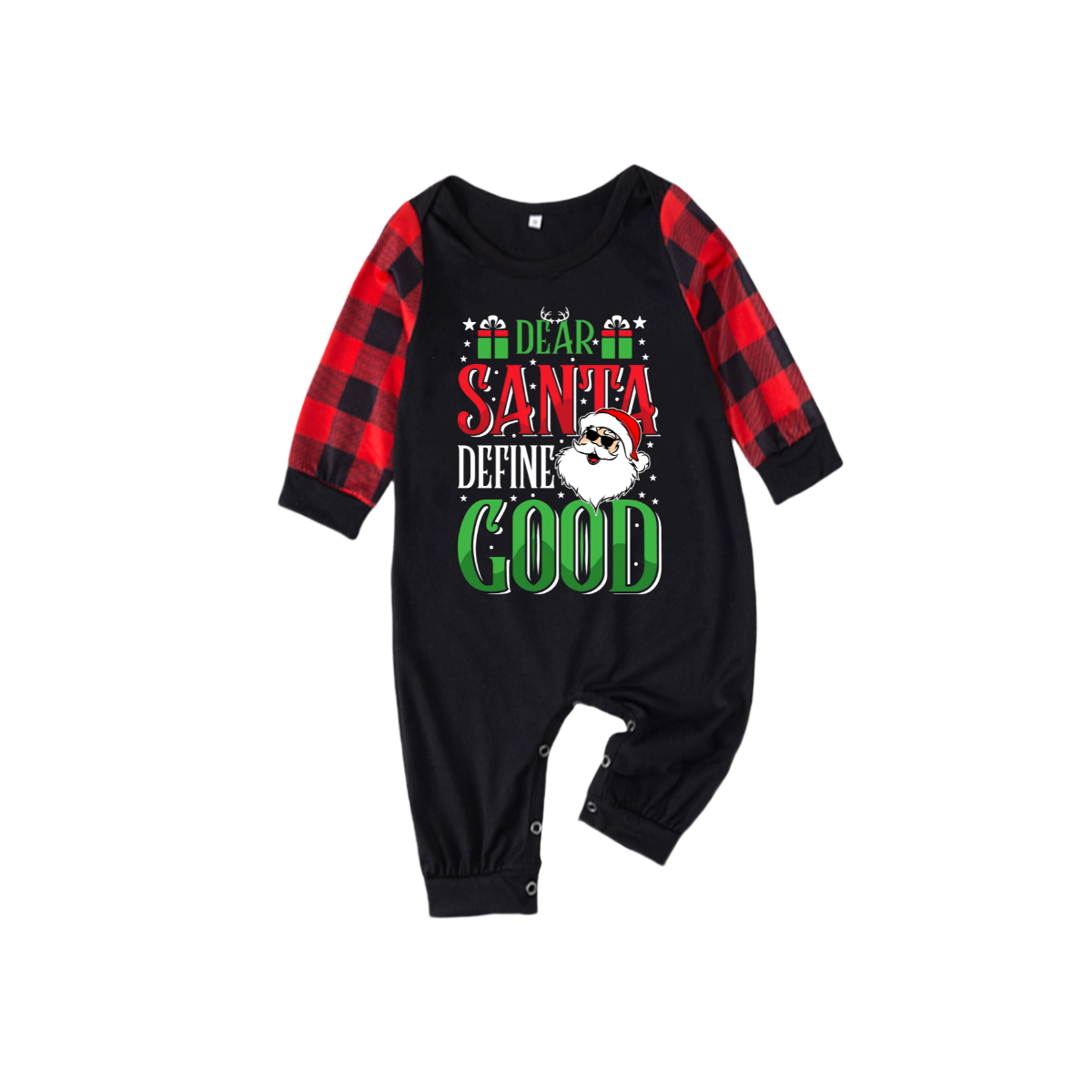 "Dear Santa Define Good" Slogan Printed Black and Red Plaid Christmas Matching Pajamas