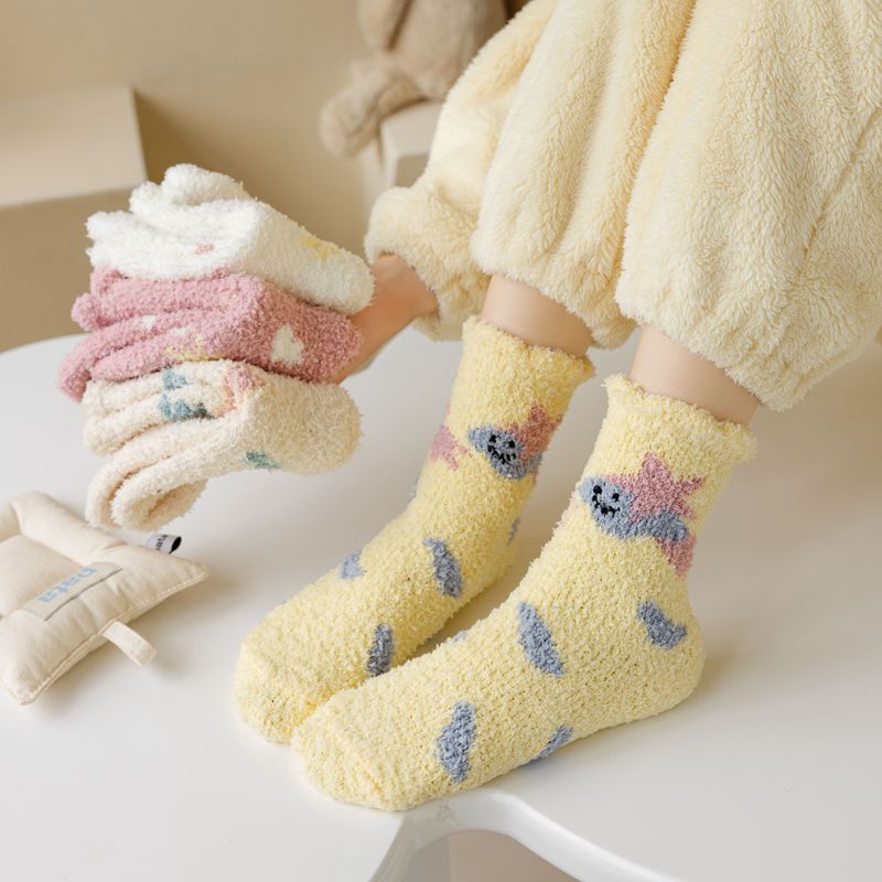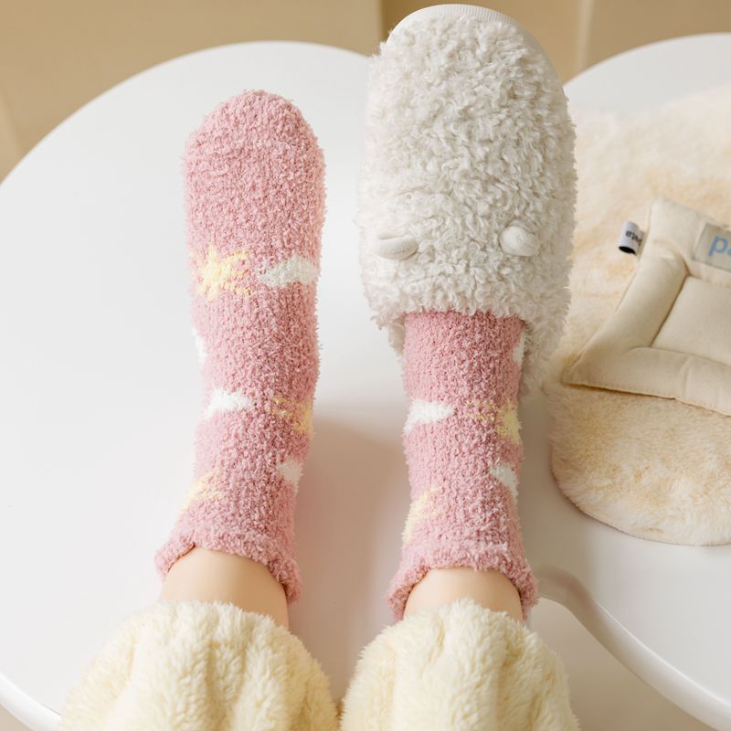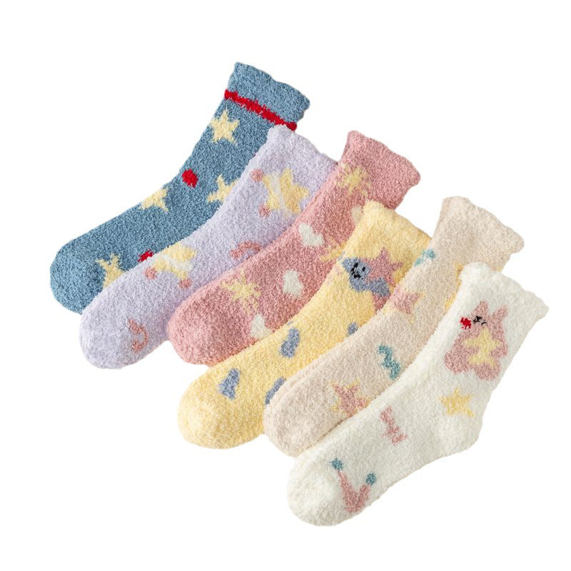 Kawaii Socks Coral Fleece Women's Winter Floor-Length Socks Cozy Cute and Bestselling for the Winter