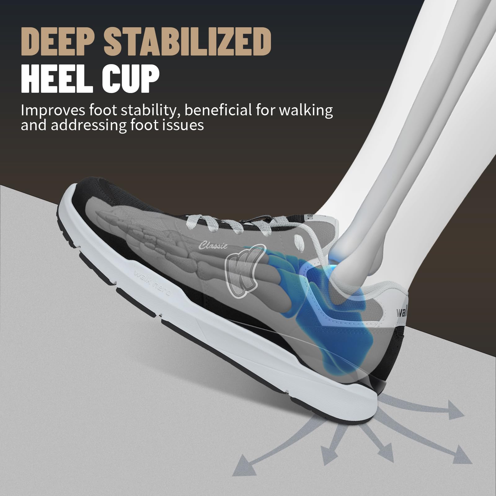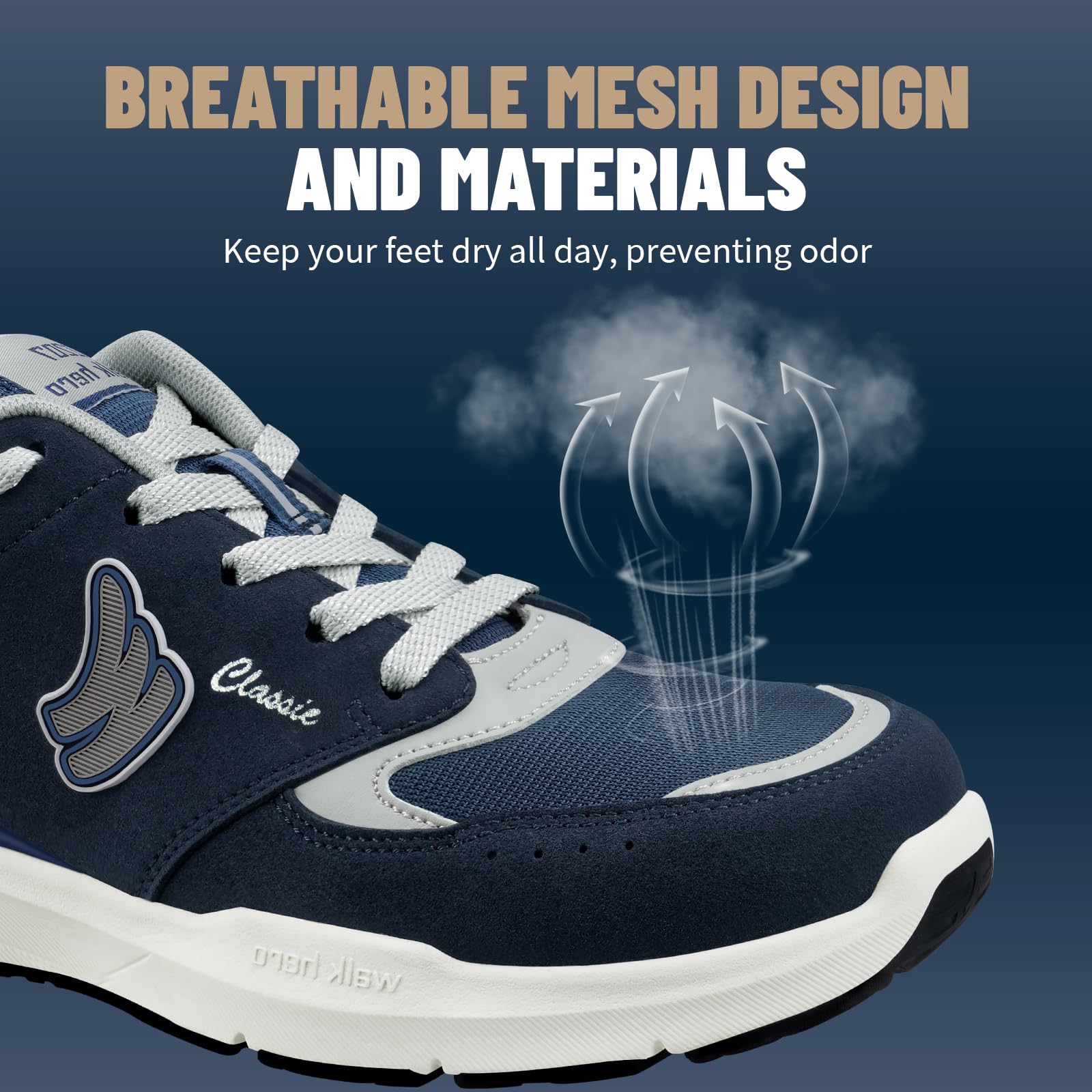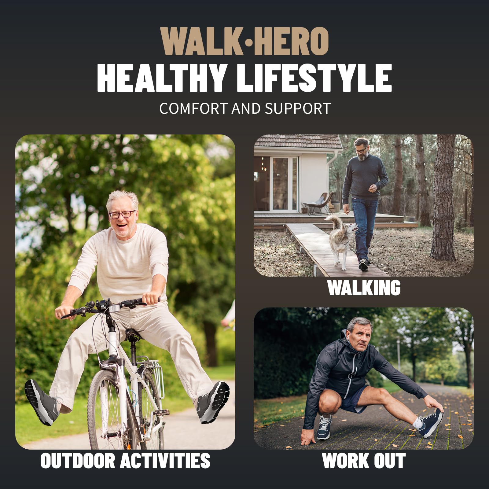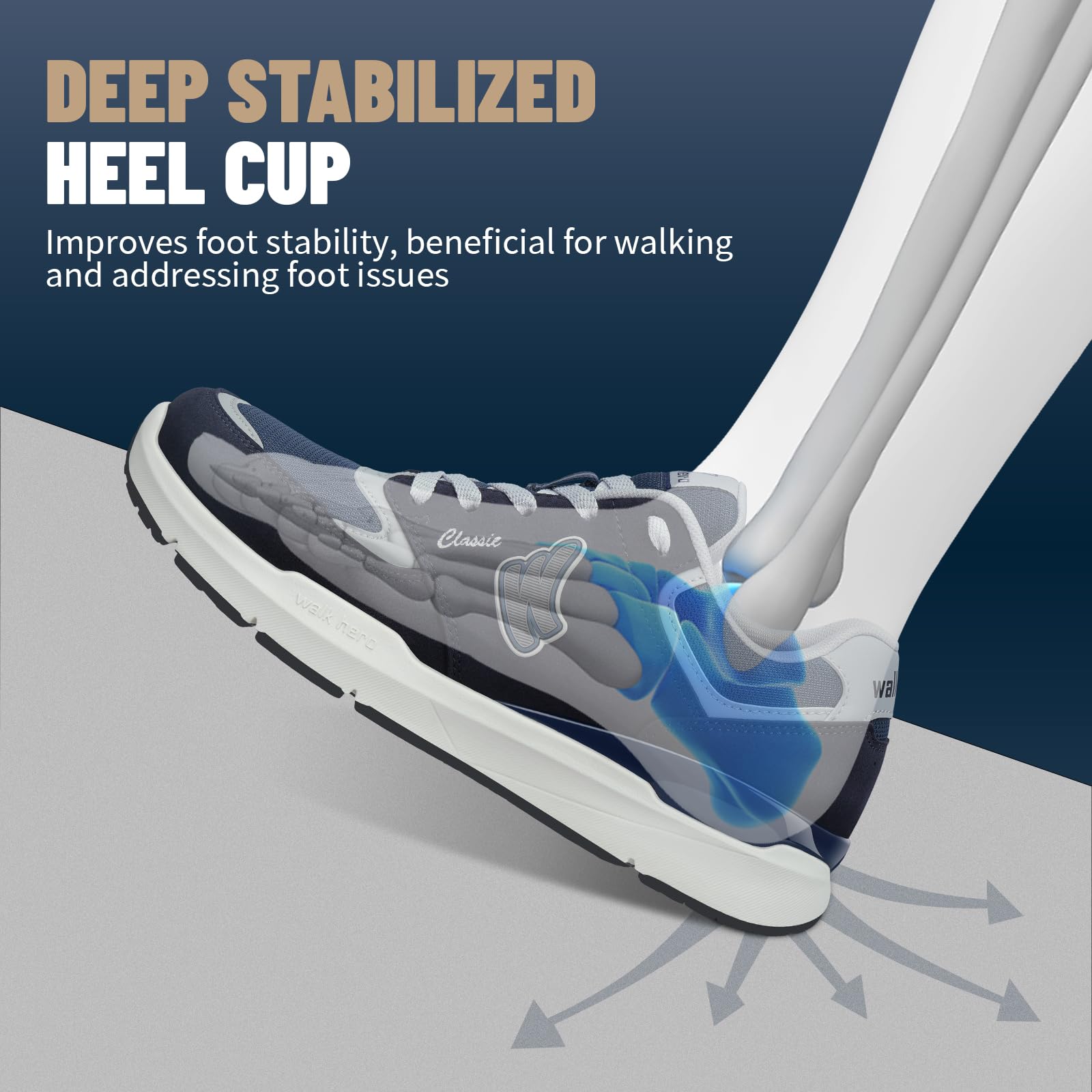 ARCH SUPPORT FUNCTION: Men's Walking Shoes along with WALK·HERO orthotic insole design for solving various foot conditions; Including. foot and heel pain. plantar fasciitis. flat feet. diabetes. arthritis. bunions. and more.