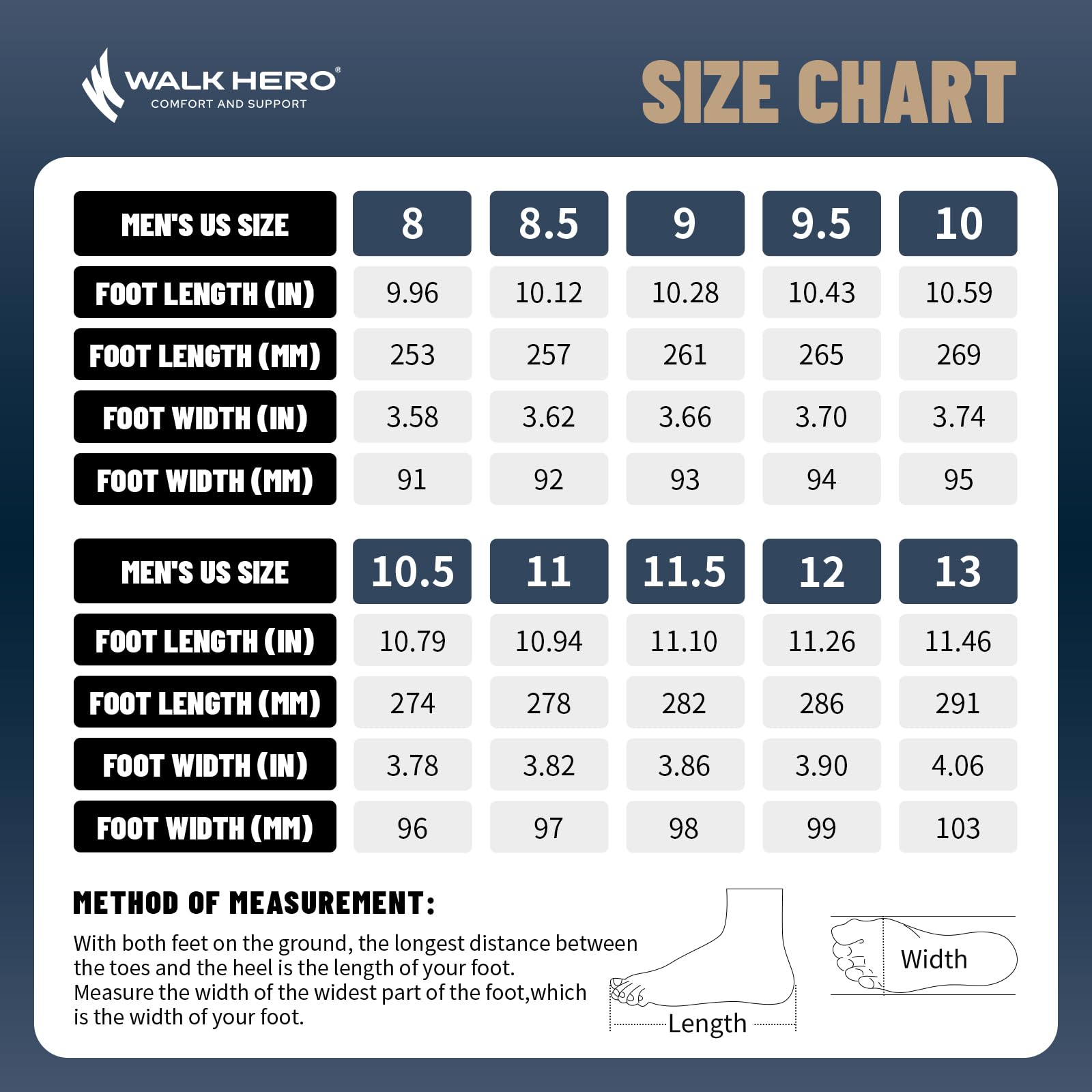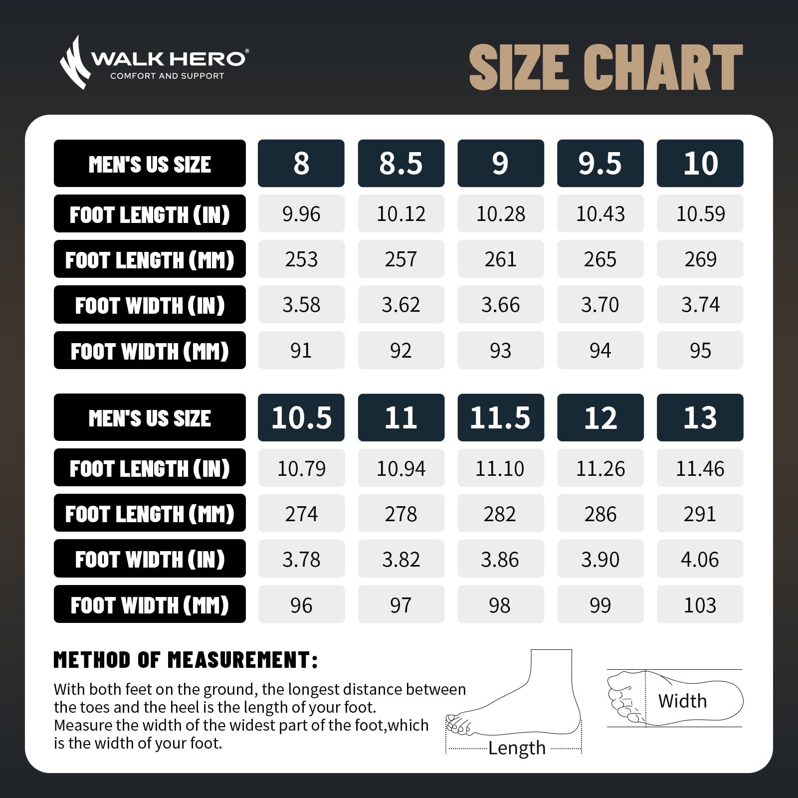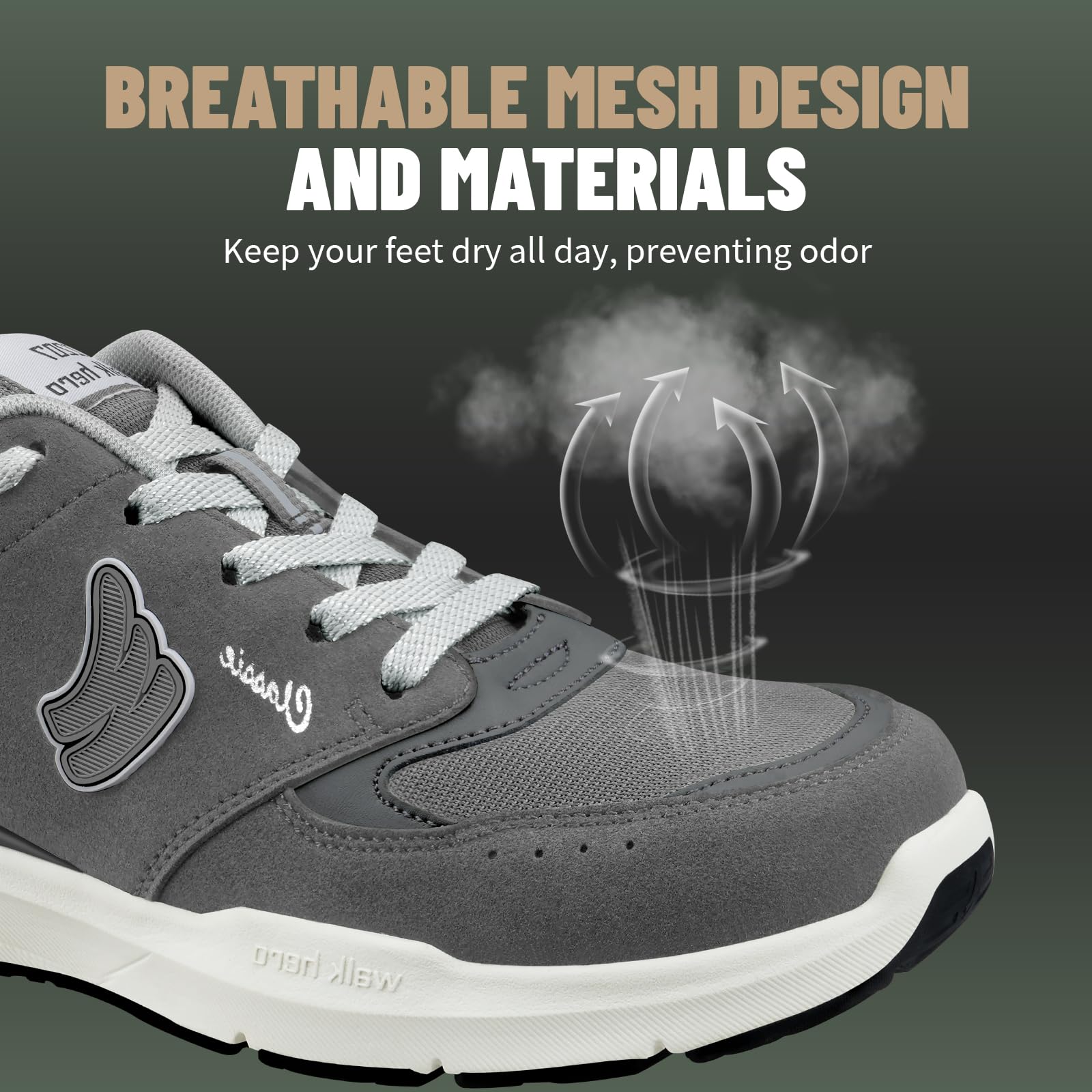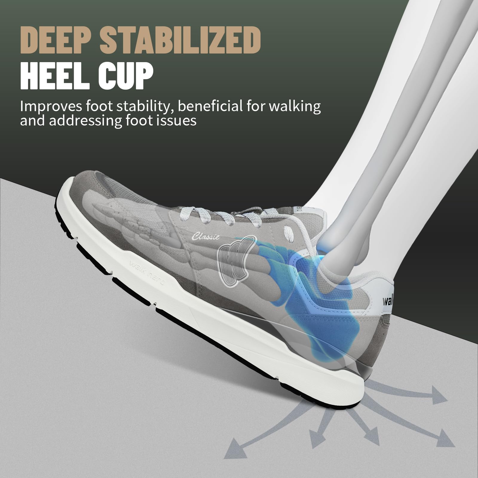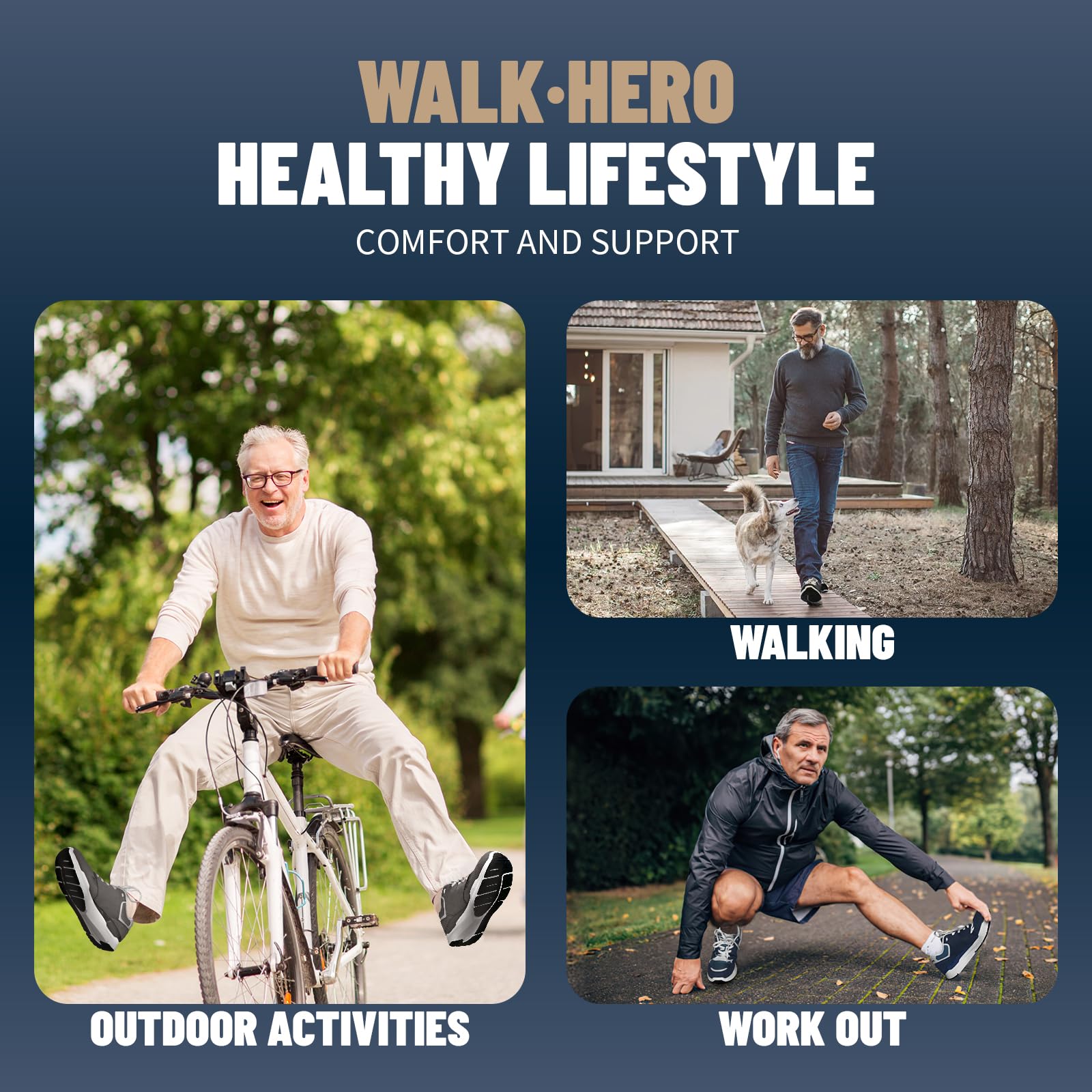 ARCH SUPPORT FUNCTION: Men's Walking Shoes along with WALK·HERO orthotic insole design for solving various foot conditions; Including. foot and heel pain. plantar fasciitis. flat feet. diabetes. arthritis. bunions. and more.