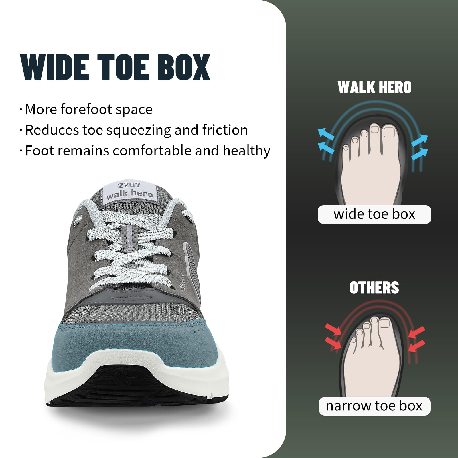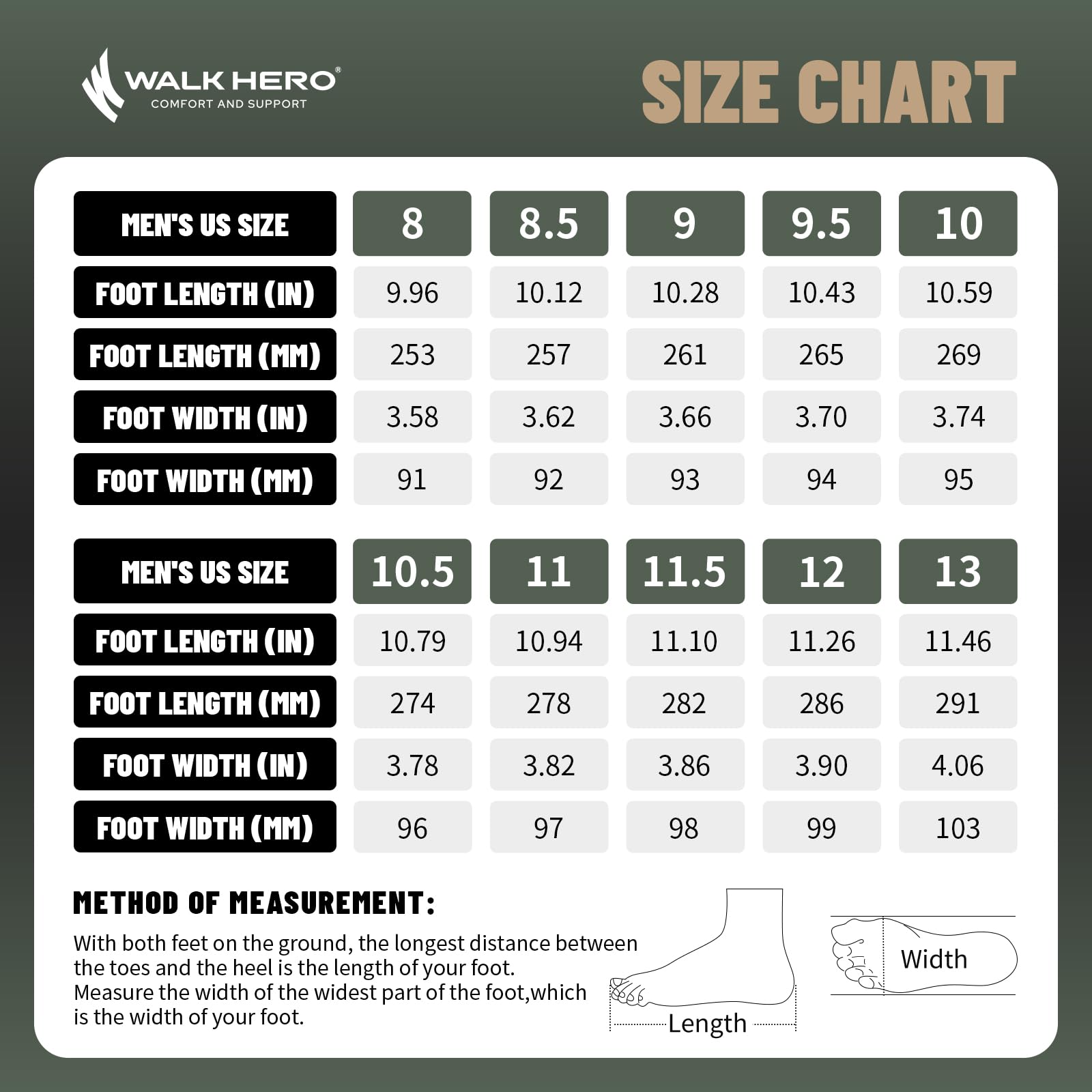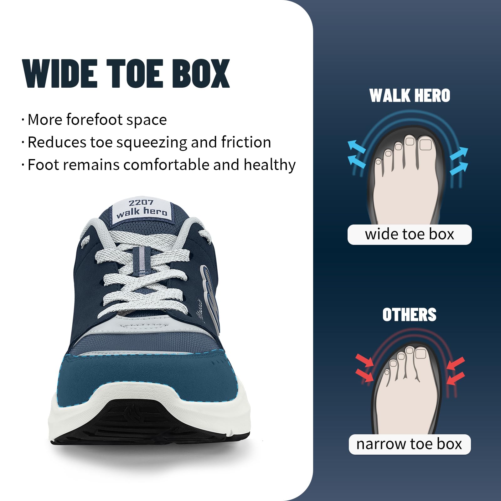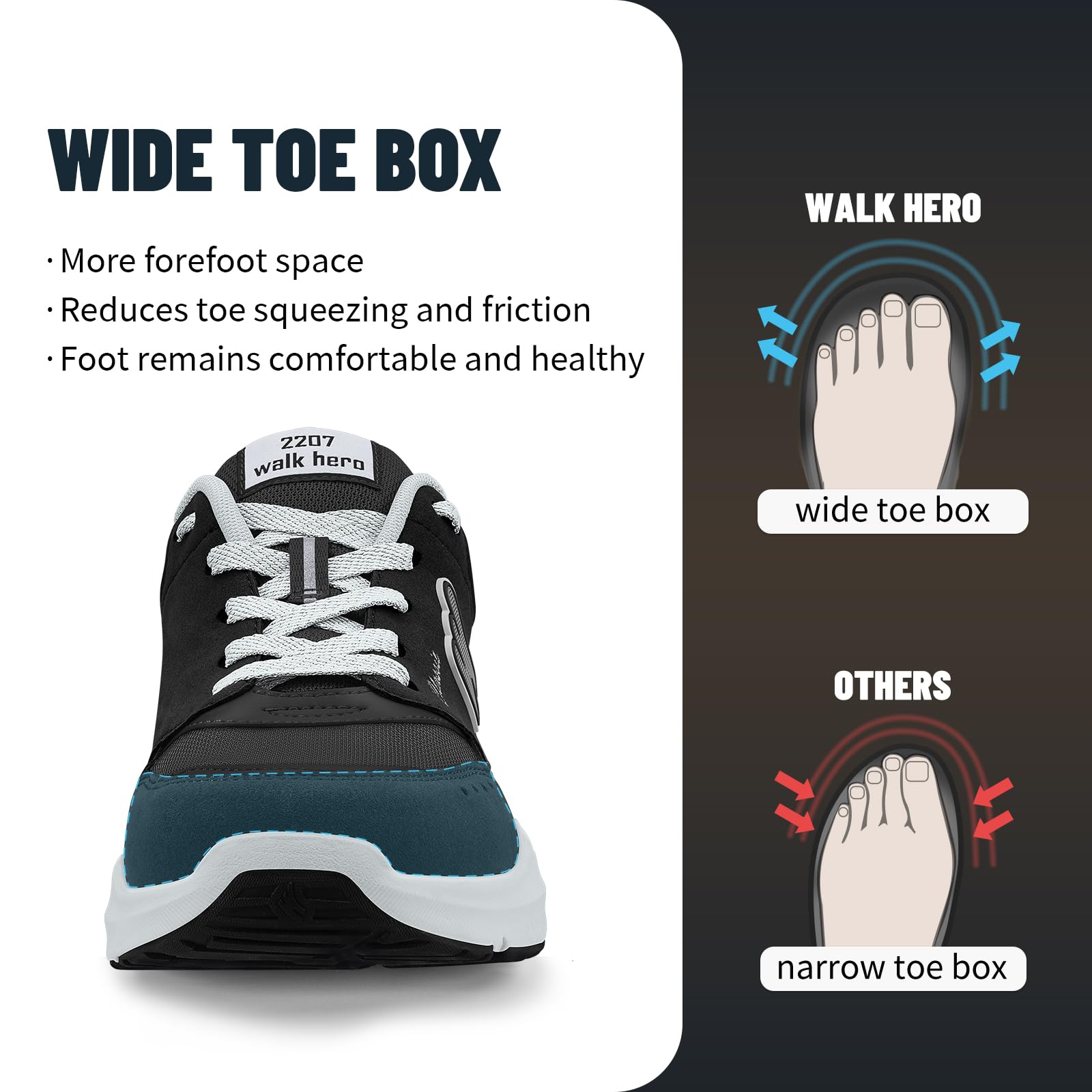 ARCH SUPPORT FUNCTION: Men's Walking Shoes along with WALK·HERO orthotic insole design for solving various foot conditions; Including. foot and heel pain. plantar fasciitis. flat feet. diabetes. arthritis. bunions. and more.
