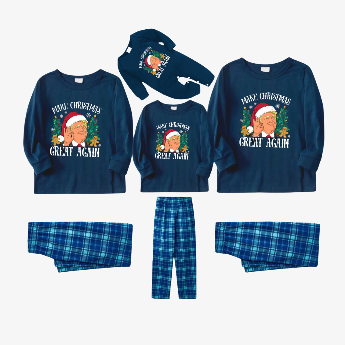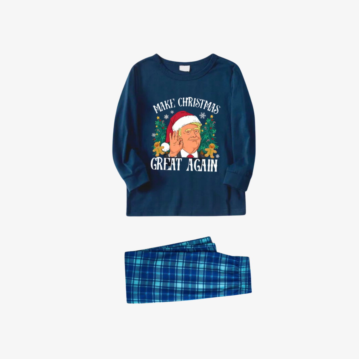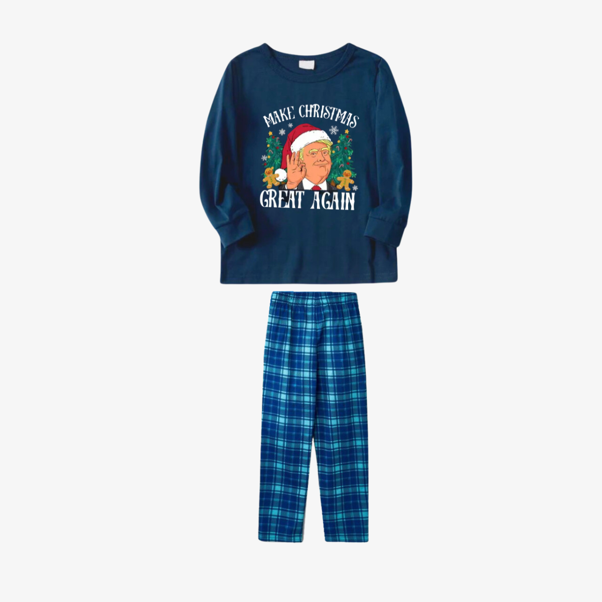 "MERRY CHRISTMAS GREAT AGAIN" Letter Printed Sky Blue Plaid Family Pajamas Sets