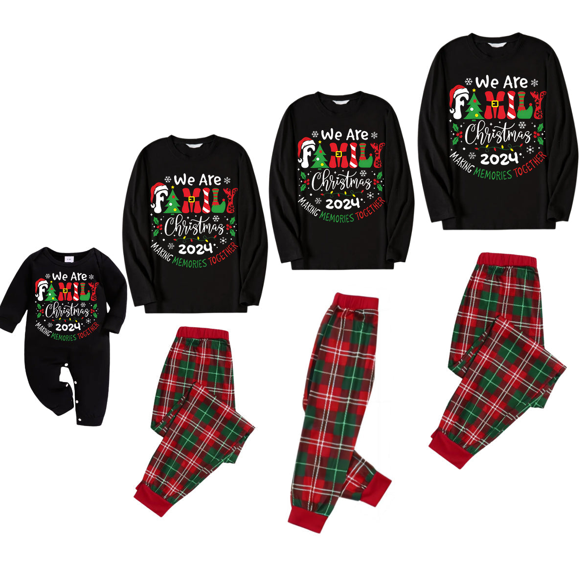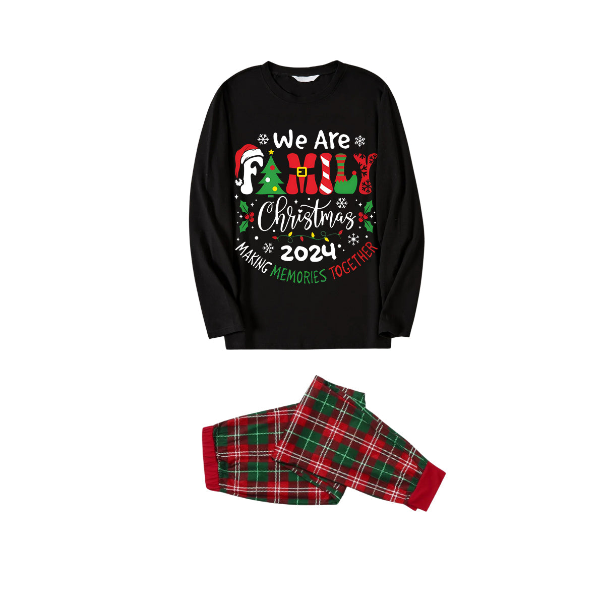 "We are Family" 2024 Christmas Wreath - Black Top with Red & Green Plaid Pants Family Matching Pajama
