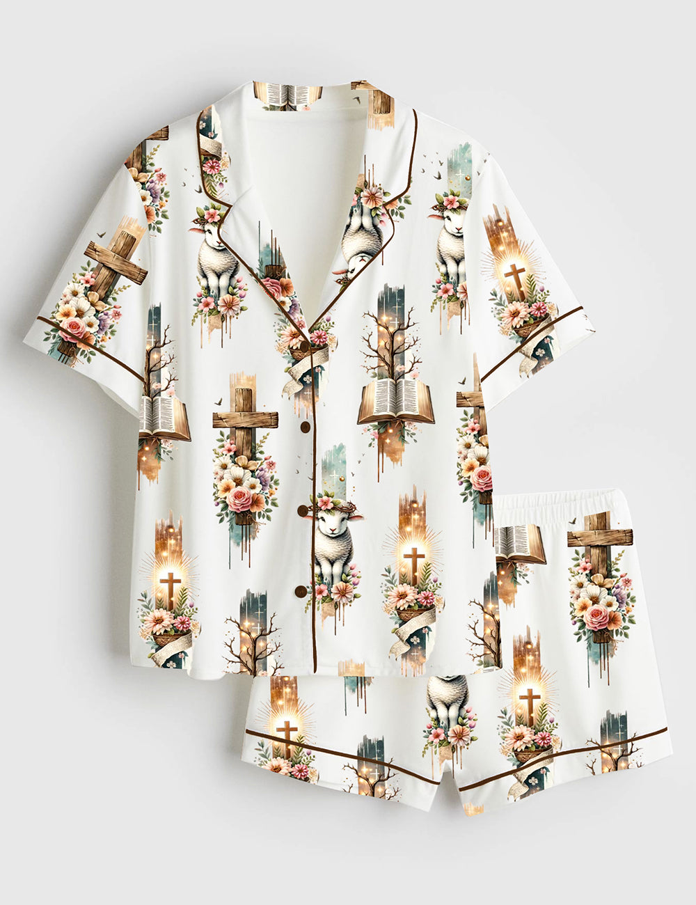 Women's Easter Bible Verse Jesus Short Sleeve Satin Pajama Set