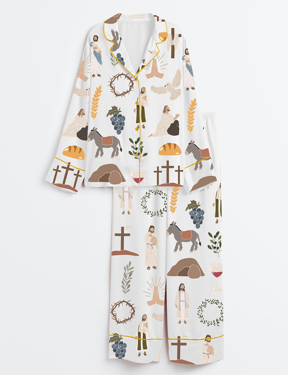 Women's Jesus Christian Bible Peace Love Faith Wine Long Sleeve Satin Pajama Set