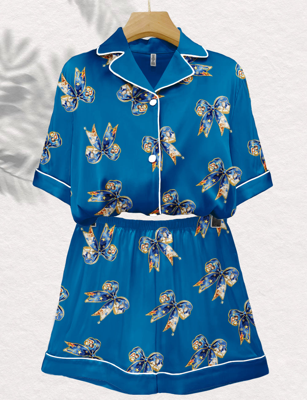 Women's Jesus Christ Bow Christmas Art Print Pajama Set