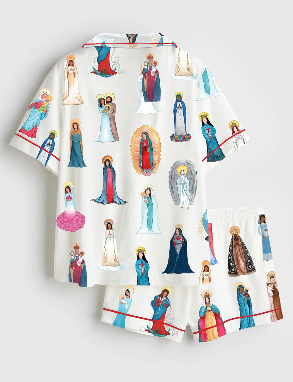 Women's Our Lady of Guadalupe Catholic Jesus Short Sleeve Satin Pajama Set