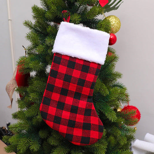 Christmas Hotel Living Room Decoration Black and Red Plaid Christmas Socks 3PCS