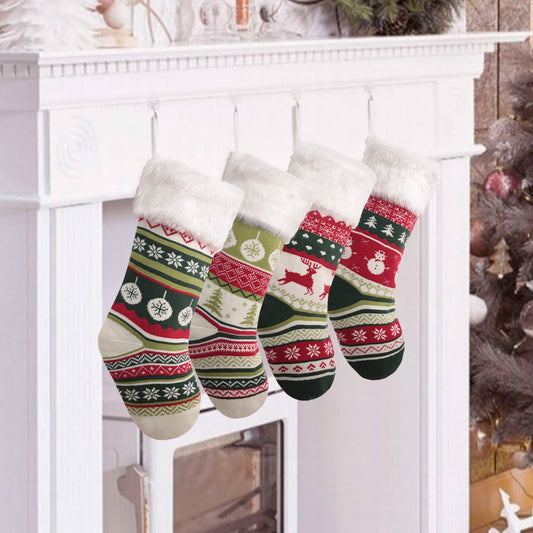 Christmas Tree Ornaments Allover Printed Knitted Christmas Stocking Candy Bag Wall Decoration