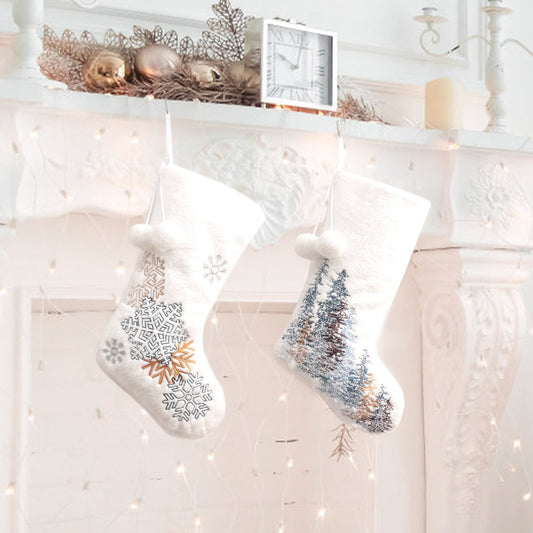 Christmas Hotel Living Room Decoration Double Ball Snowflake/Forest White Christmas Socks Gift Bag