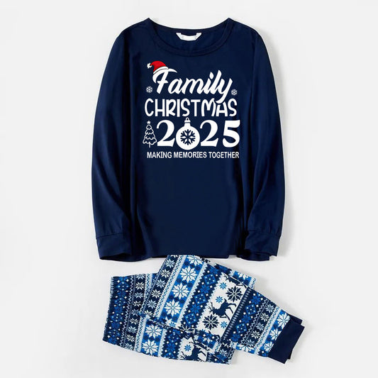 "Family Christmas 2025 " Text Print Blue Family Matching Pajamas