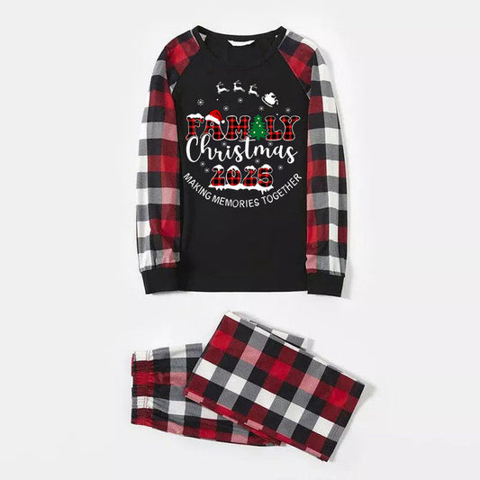 Christmas Family Christmas 2025 Letter Print Patterned Contrast Black top and Black & Red Plaid Pants Family Matching Pajamas Set