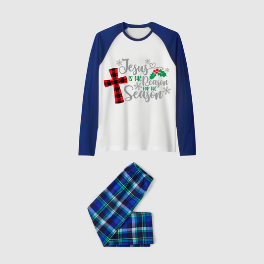 Jesus Reason Christmas Pajamas - Navy & Green Plaid