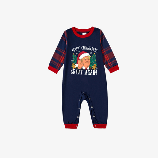 "MERRY CHRISTMAS GREAT AGAIN" Letter Printed Red and Blue Plaid Family Pajamas Sets