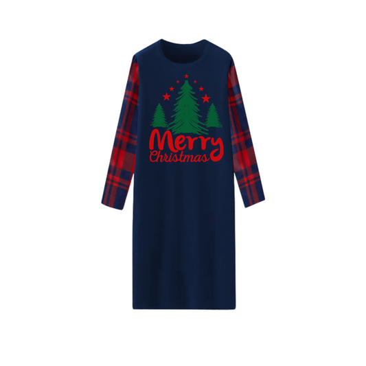 "A Very Merry Christmas" Blue Long Sleeve Top with Blue & Red Plaid Family Matching Pajamas