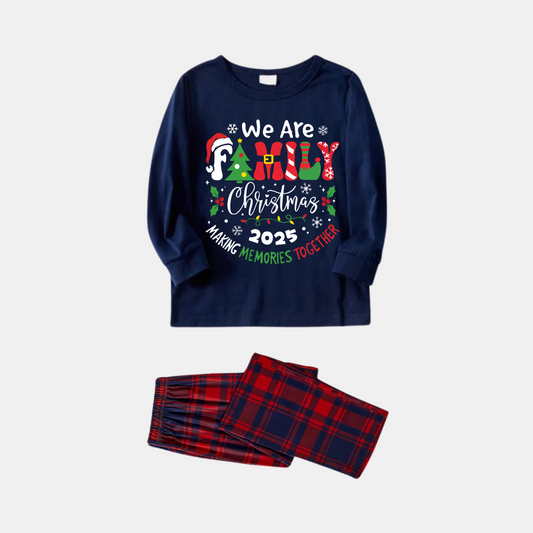 Christmas Make Memories Together 2025 Print Blue Long Sleeve Top with Red & Blue Plaid Family Matching Pajamas