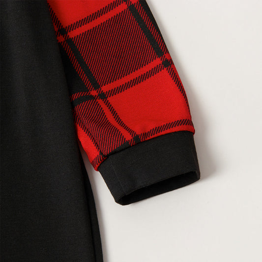Christmas Hat and 'Believe“ Letter Print Patterned Contrast Black top and Black & Red Plaid Pants Family Matching Pajamas Set