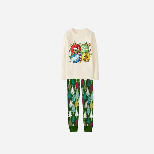 Family Christmas Pajamas Set With Ball Ornaments and Grinch Print