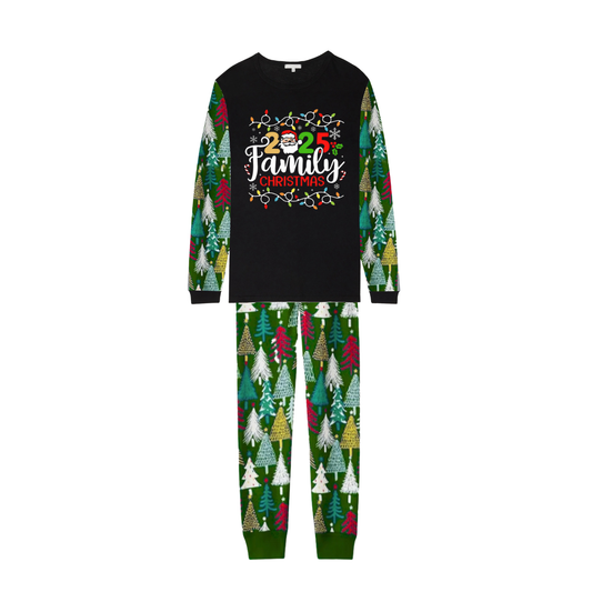 Christmas Tree Christmas Pajamas Set With Christmas Light and "2025 Family Christmas" Text Print