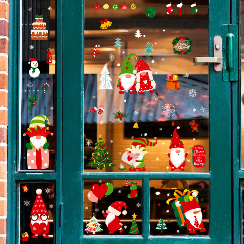 Christmas Decoration Balloon Cake Tree Snowman Gnome Wearing Glasses Electrostatic Wall Stickers HTJD2302